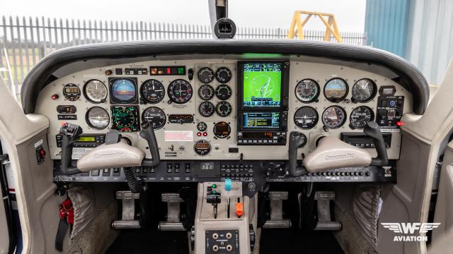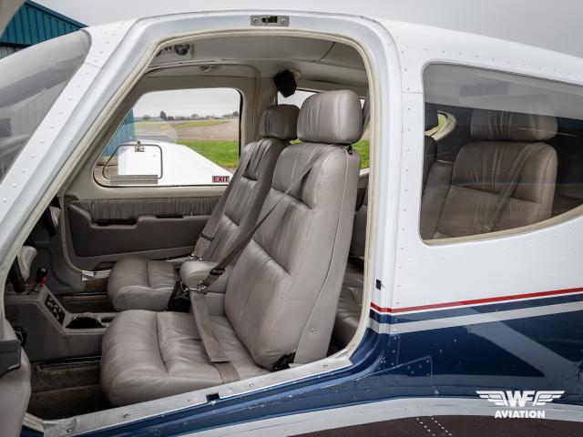 The panel has been generously upgraded, with Garmin GTN 750, GTN650, and GTX 330 on top of the valuable 3-axis Bendix King KFC 225 factory autopilot option. Other items that would have been fitted at production would be the EDM 800 Engine Monitor, Co-Pilot Instruments, Second Alternator, and Air Conditioning. The ruffled grey leather seating is just a great roomy place to be, wider and more comfortable than many twin-engine aircraft. There are so many great features and upgrades on this aircraft, we would love to show them to you in person. The pulsing LED lights just add to the incredible ramp presence of the aircraft; there is nowhere you could show up that this aircraft won't get admiring glances.